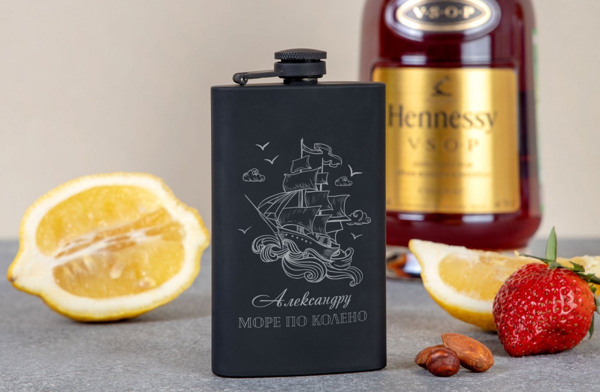 Чорна фляжка з гравіюванням